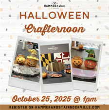 Join us Saturday, October 25 from 1–3 PM at Hammer & Stain Rockville for an exclusive workshop full of surprise seasonal projects you won’t find in our regular lineup.