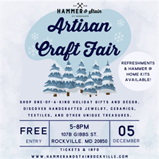 Free admission, register a spot on: https://www.hammerandstainrockville.com/collections/rockville-md-studio/products/12-05-2025-5pm-hammer-winter-arts-festival