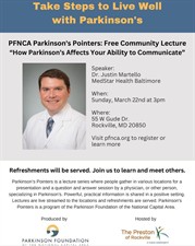 PFNCA Parkinson's Pointers: Free Community Lecture "How Parkinson's Affects your Ability To Communicate" at The Preston of Rockville